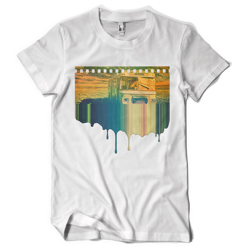 "bus to nowhere" Artwork created in Adobe Photoshop. The file available for the client upon purchase and download are 1 layered file in TIFF (with transparency) format designed for DIRECT TO GARMENT printing. Also available upon request is 1 file in PDF format, layered, designed for the SCREEN PRINTING.