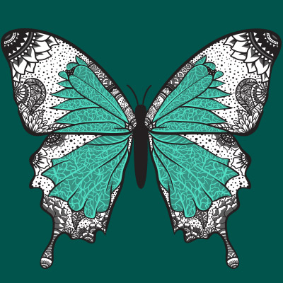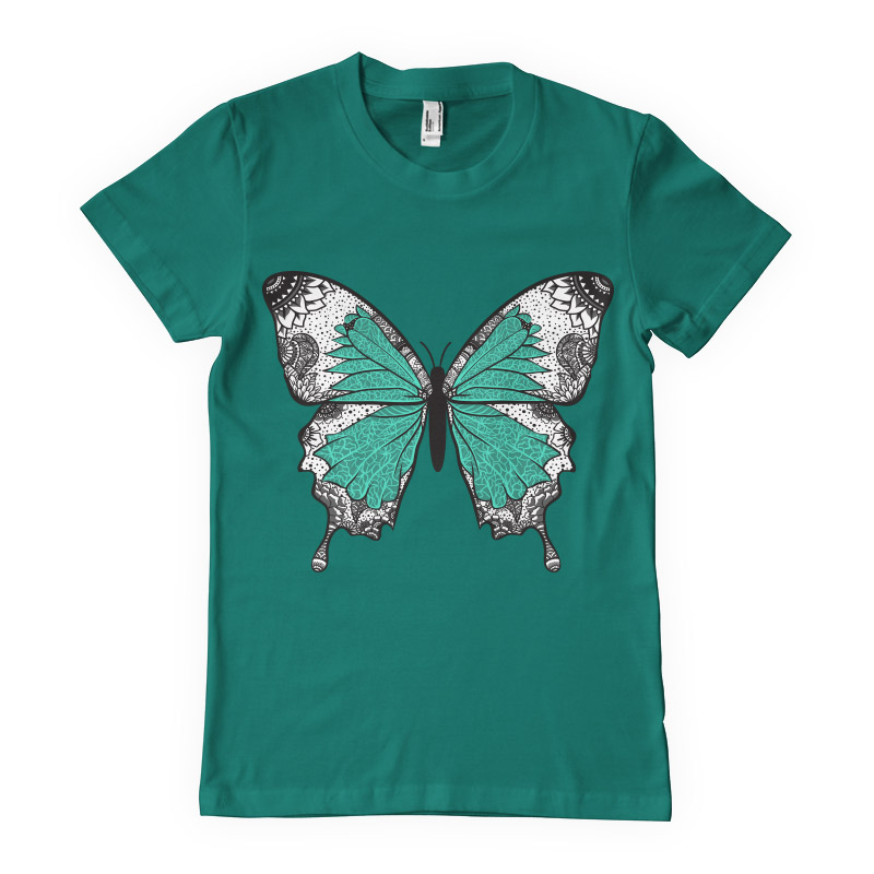 Butterfly T-Shirt Design. Digital illustration of featuring detailed flowers inside butterfly.The colors are changeable. The source file is available in AI, EPS, PNG, PSD and SVG format.