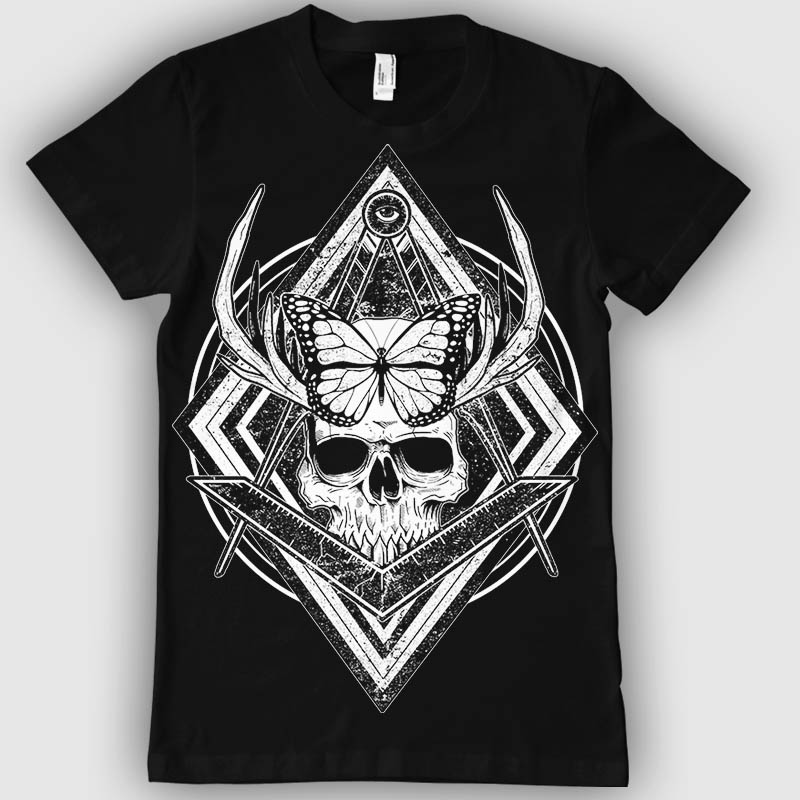 Butterfly T-shirt design template with Adobe Photoshop, one colour on black, PSD separated Layers. Can be used for digital printing and screen printing.
