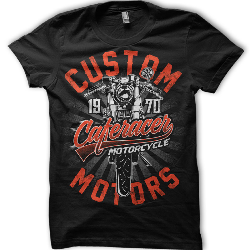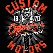 "CAFERACER CUSTOM MOTORCYCLE" T-Shirt was created with Corel Draw and Adobe illustrator. Three colour print in CDR, AI and PNG formats. Can be used for digital printing and screen printing.