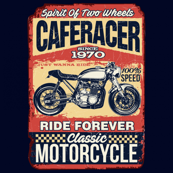 “CAFERACER MOTORCYCLE” T-Shirt was created with Corel Draw and Adobe illustrator.four color print, CDR,AI,PNG. Can be used for digital printing and screen printing