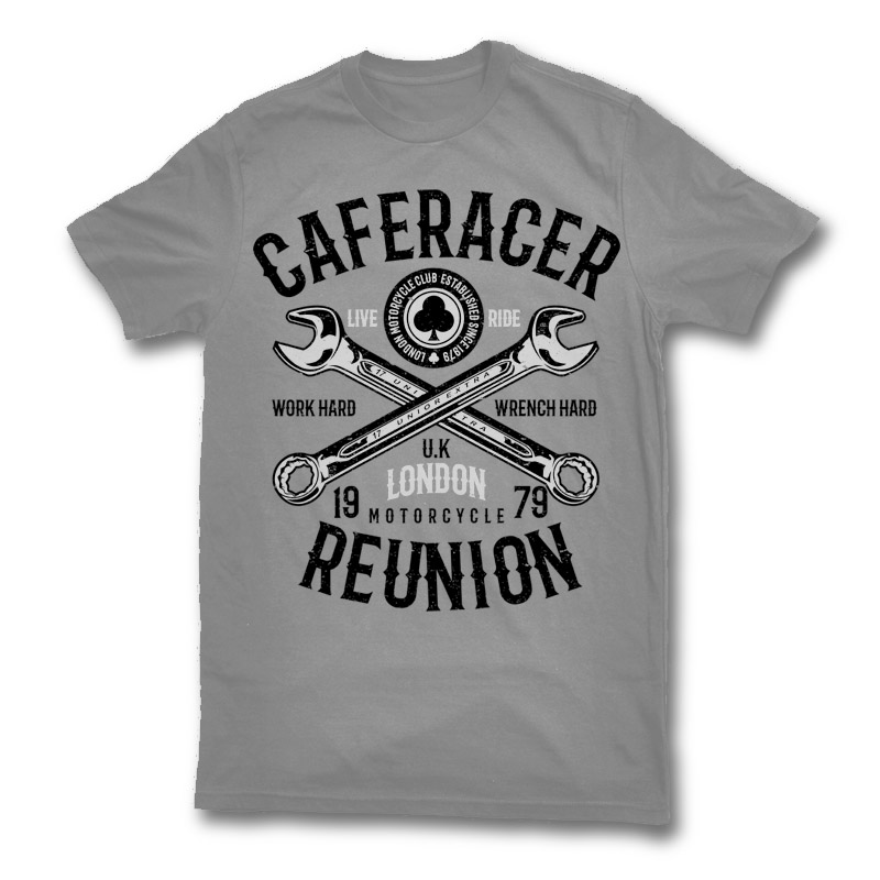Caferacer Reunion Tshirt Design Template based on vector files , such as AI and CDR also with PSD separated Layers file, the design has 2 color print, it can be used for digital printing and screen printing.