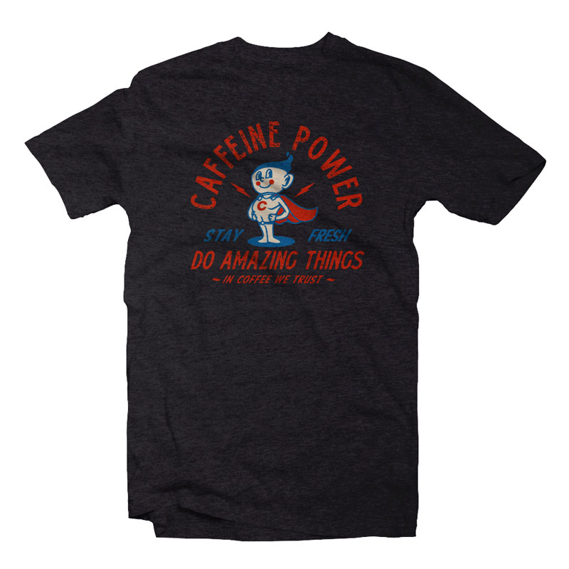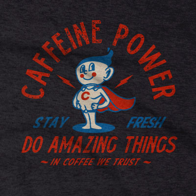 This design “ Caffeine Power” is made in Adobe Ilustrator is ready for print.