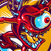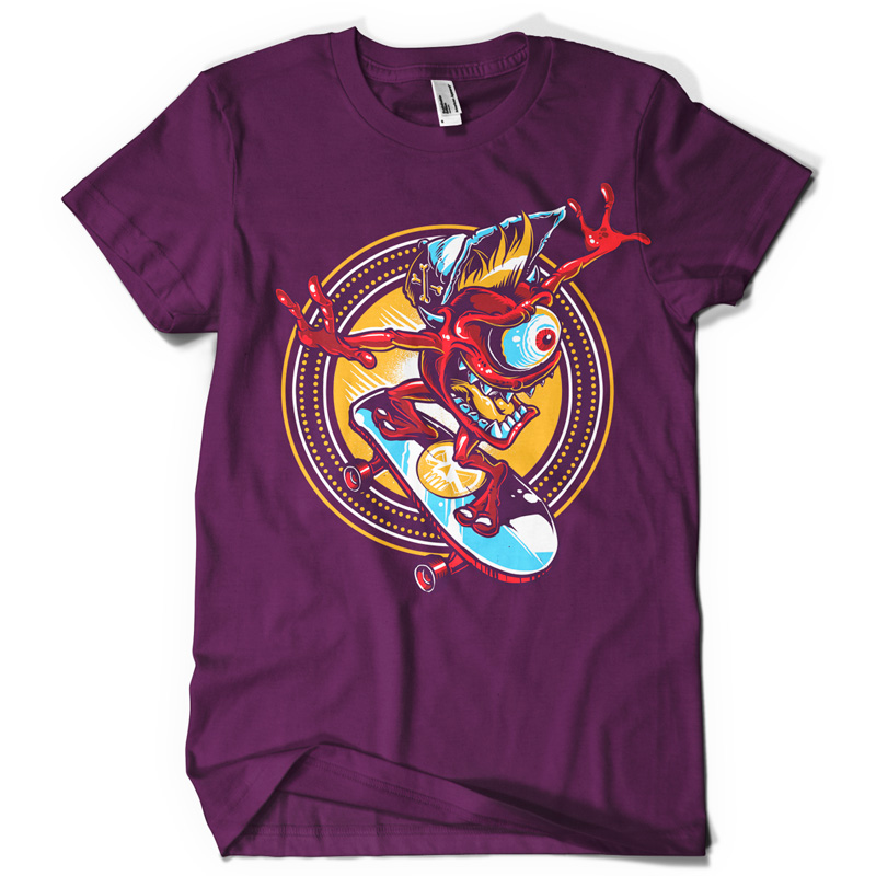 Cali skate t-shirt design featuring creepy eye skating .T-shirt Design is available for Adobe Illustrator, Adobe Photoshop and Corel Draw and can be used for digital printing and screenprinting.
