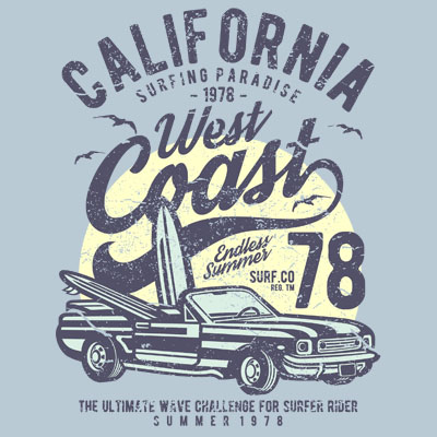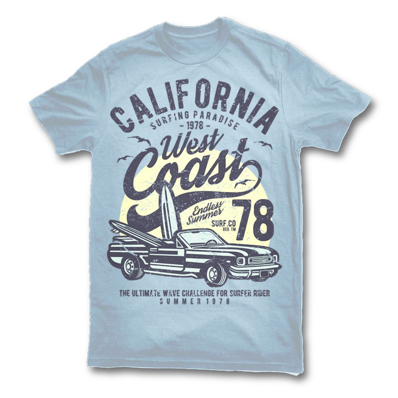 California West Coast Tshirt Design Template based on vector files , such as AI and CDR also with PSD separated Layers file, the design has 3 color print, it can be used for digital printing and screen printing.