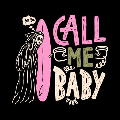 "call me baby" T-shirt design featuring typography style illustration, with distressed details. The files available are suitable for corel draw, adobe illustrator and png (high resolution) and can be used for digital printing and screenprinting.