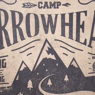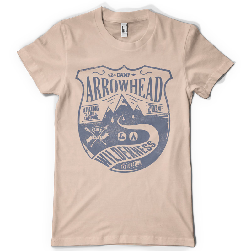 Camp Arrowhead graphic design template in vector format, featuring detailed nature on shield now available for Adobe Illustrator, Adobe Photoshop and Corel Draw and can be used for digital printing and screenprinting .