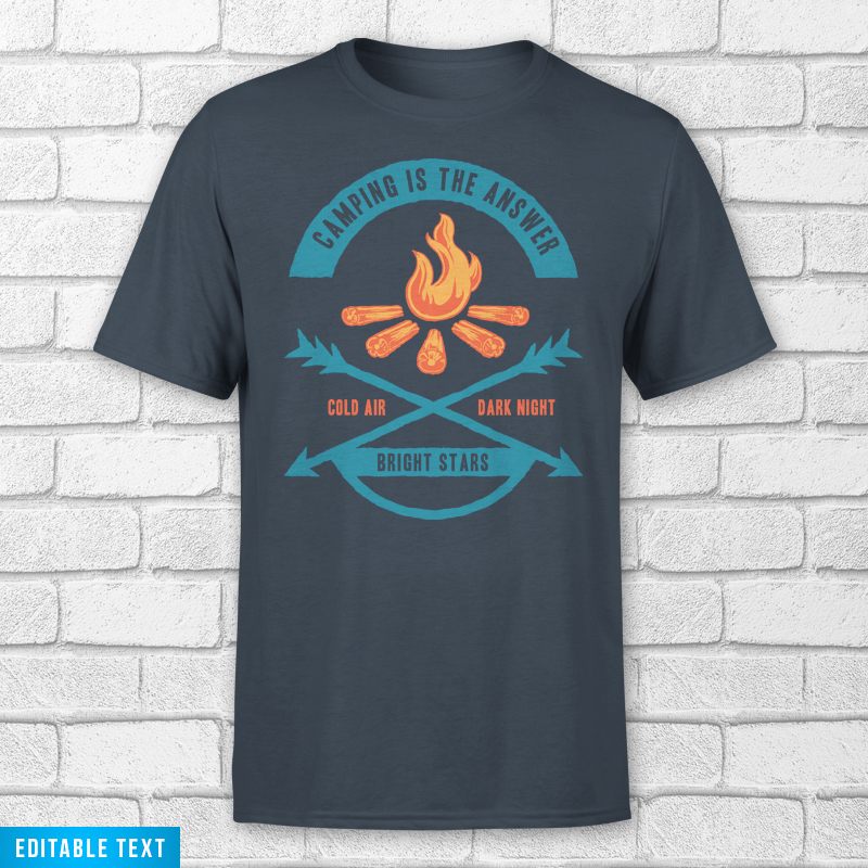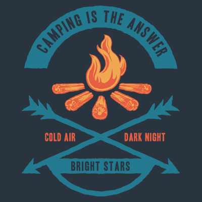 Camping Is The Answer is typography based graphic with adventure mountain camp outdoor holiday theme and vintage style illustration. The text is EDITABLE so you can change with your own words.