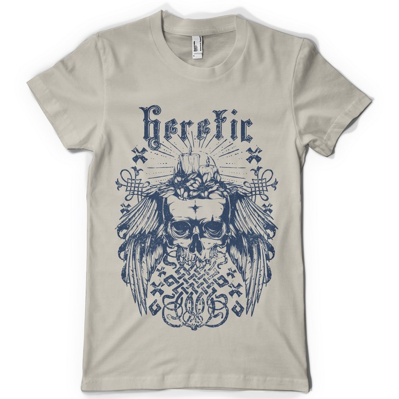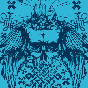 Candle Skull graphic design template in vector format, featuring detailed winged skull now available for Adobe Illustrator, Adobe Photoshop and Corel Draw and can be used for digital printing and screenprinting .