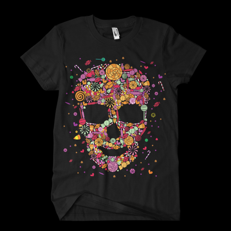 Candy Skull ,urban and cool t shirt,for skull and candy lovers,for Adobe Illustrator, Adobe Photoshop and can be used for digital printing and screenprinting . Ready to print