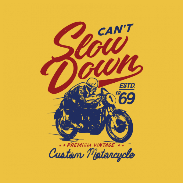 This design “ can't slow down ” is made in Adobe Ilustrator is ready for print.