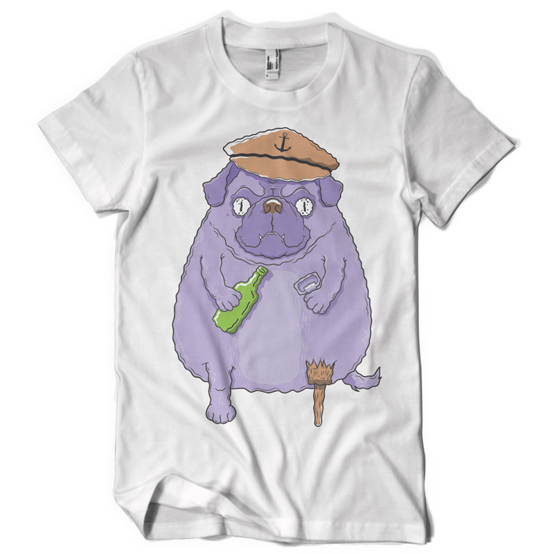Captain Pug printed t-shirt features a detailed screen print of sailor the pug now available for Adobe Illustrator, Adobe Photoshop and Corel Draw and can be used for digital printing and screenprinting . Ready to print or use in anything you want.