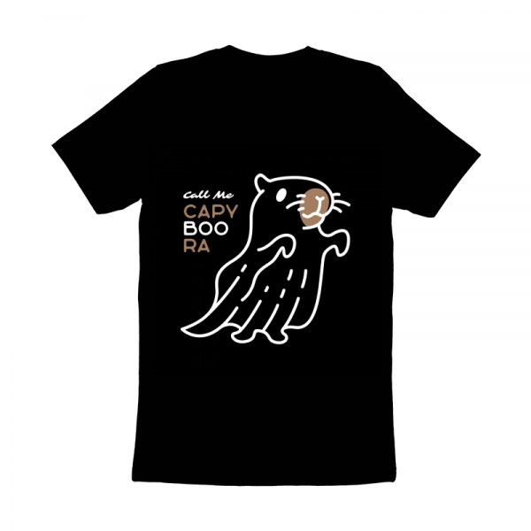 Capyboora is a monoline illustration that is suitable for apparel or merchandise about capybara, animal, cute, funny, rodent, capibara, carpincho, cabiai, chiguire, capivara, ghost, horror, halloween, trick or treat, boo.