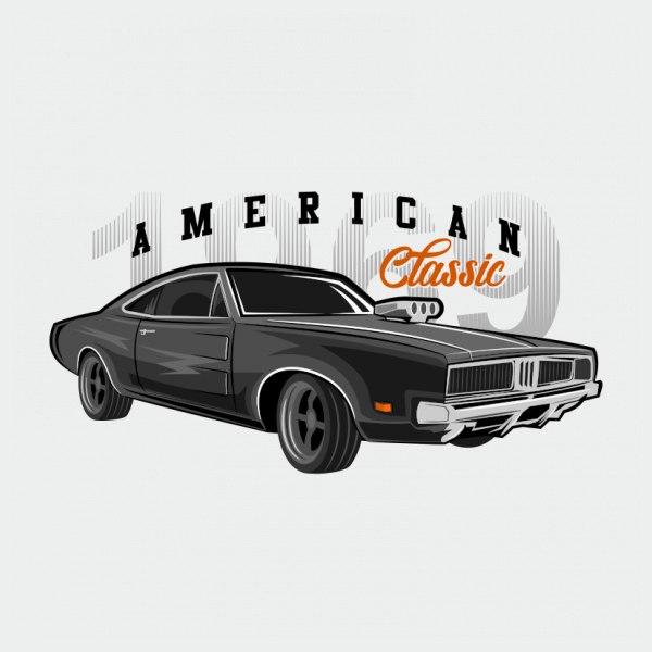 Car illustration american classic 69 tshirt vector