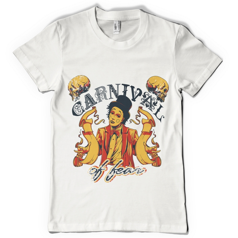 Carnival T-shirt template in vector format, featuring detailed staring clown now available for Adobe Illustrator, Adobe Photoshop and Corel Draw and can be used for digital printing and screenprinting .