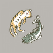Cat Fish Yin Yang is a vintage illustration that is suitable for apparel or merchandise about animal, cat, dog, fish, yin yang, pet, pussy, cute, meow, fishing, kitten, kitty, sea, ocean, funny, meme.