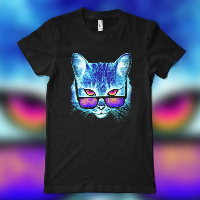 "Catismatic" is a unique illustration of a cat wearing sunglasses with a mixture of bright neon colors that makes this an attraction. File contains a PSD file with 17 x 24 in size.