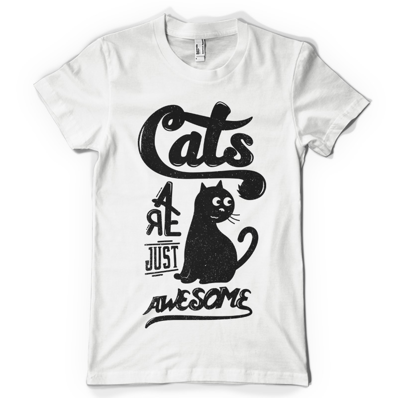 "Cats" T-shirt design featuring a funny cat with typography style quote and distressed details. The files available are suitable for Adobe Illustrator, Adobe Photoshop and Corel Draw and can be used for digital printing and screenprinting.