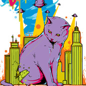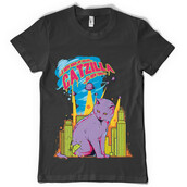 Catzilla digital design template in vector format, featuring detailed big cat destroying the city now available for Adobe Illustrator, Adobe Photoshop and Corel Draw and can be used for digital printing and screenprinting .