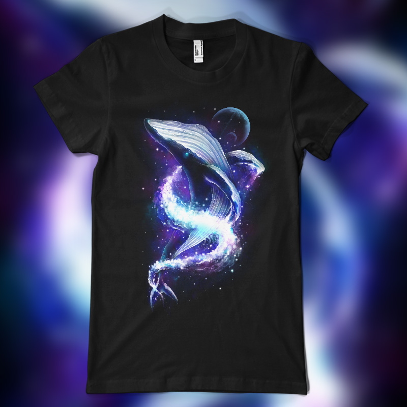 "Celestial Whale" is a unique illustration of a whale bursting some galaxies. This style mixture of animals and science makes this design very unique and one-of-a-kind. File contains a PSD with 17 x 24 in size.