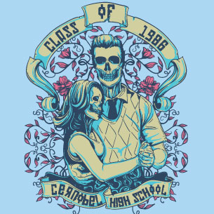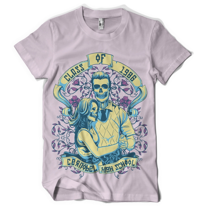Cernobil highschool graphic design template in vector format, featuring detailed loely couple of skulls now available for Adobe Illustrator, Adobe Photoshop and Corel Draw and can be used for digital printing and screenprinting .