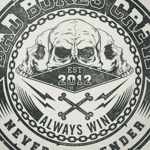 Chain of power graphic design template in vector format, featuring detailed crew of skulls now available for Adobe Illustrator, Adobe Photoshop and Corel Draw and can be used for digital printing and screenprinting .