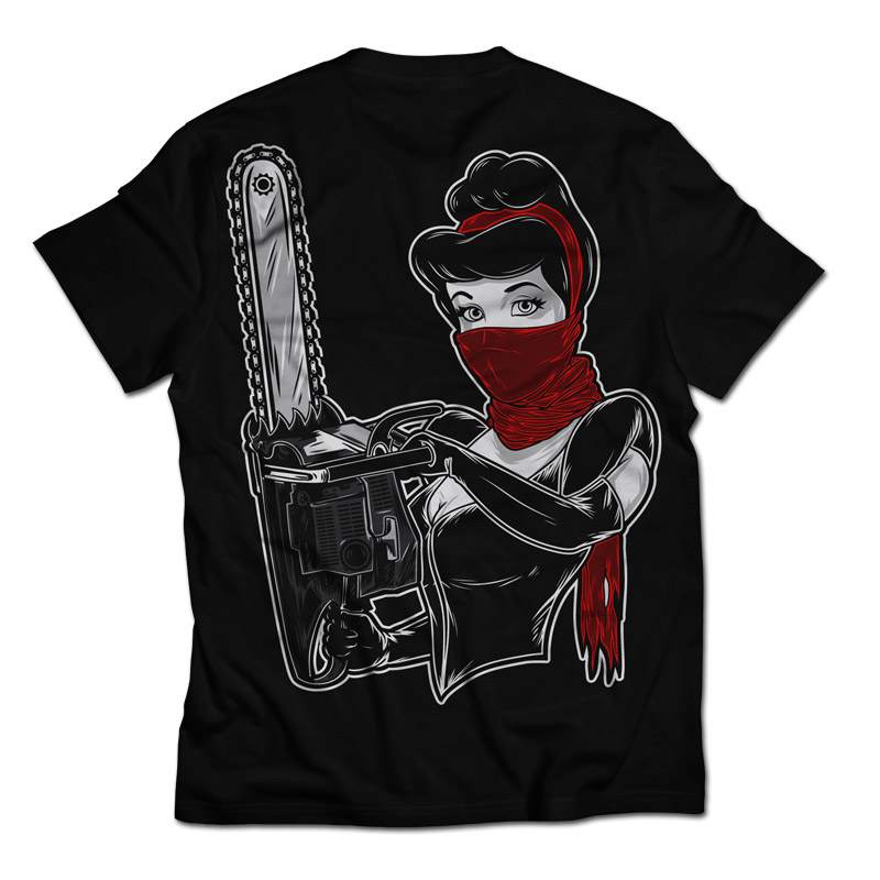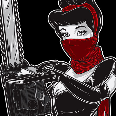 Chainsaw Princess. A funny character style illustration. Rebel Princess collections. Easy to add the text and replace colors. ZIP Features contain 1 EPS 10 1 Ai 1 PSD Size 16'x24' CMYK Color mode Layered
