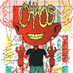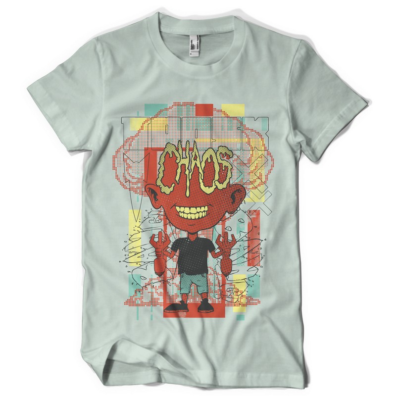 Chaos graphic design template in vector format, featuring detailed hipster boy now available for Adobe Illustrator, Adobe Photoshop and Corel Draw and can be used for digital printing and screenprinting .