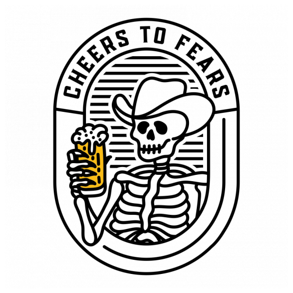 Is a monoline illustration that is suitable for apparel or merchandise about skull, skeleton, horror, halloween, trick or treat, death, ghost, grim reaper, drink, beer, alcohol, oktoberfest, wine, cheers, beverage.
