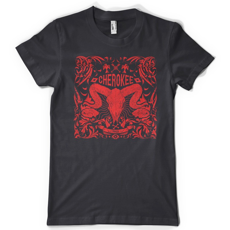 Cherokee graphic design template in vector format, featuring detailed evil horned animal now available for Adobe Illustrator, Adobe Photoshop and Corel Draw and can be used for digital printing and screenprinting .