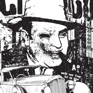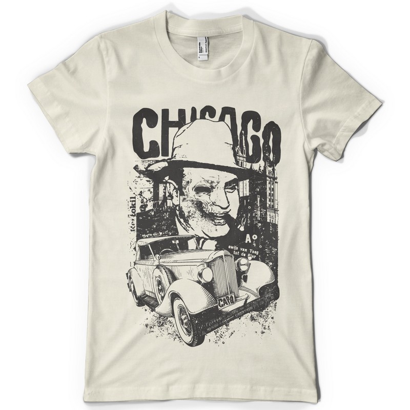Chicago graphic design template in vector format, featuring detailed badass mobster now available for Adobe Illustrator, Adobe Photoshop and Corel Draw and can be used for digital printing and screenprinting .