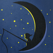 Child on the moon is an illustration made in Adobe Illustrator,featuring a child fishing on the moon.It is available in PSD,EPS,AI and PNG format file and it can be used on digital printing,screen printing and T-shirt design.