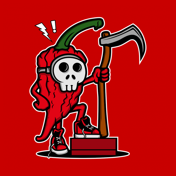 Vector illustration of CHILLI REAPER, this image is very cute for t-shirts and posters, this design is available in the form of files, CDR, AI, transparent backround PNG, JPEG, SVG, EPS, mookup not included.