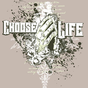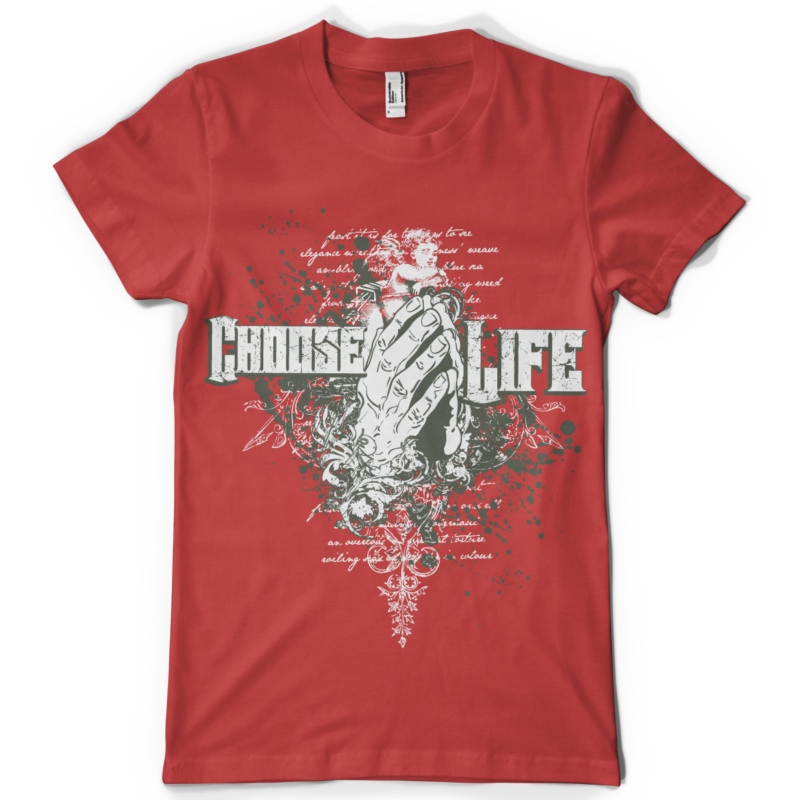 Digital template featuring hands praying and a protecting angel. Choose life will be available in vector format for Adobe Illustrator, Adobe Photoshop and Corel Draw and can be used for digital printing and screenprinting .