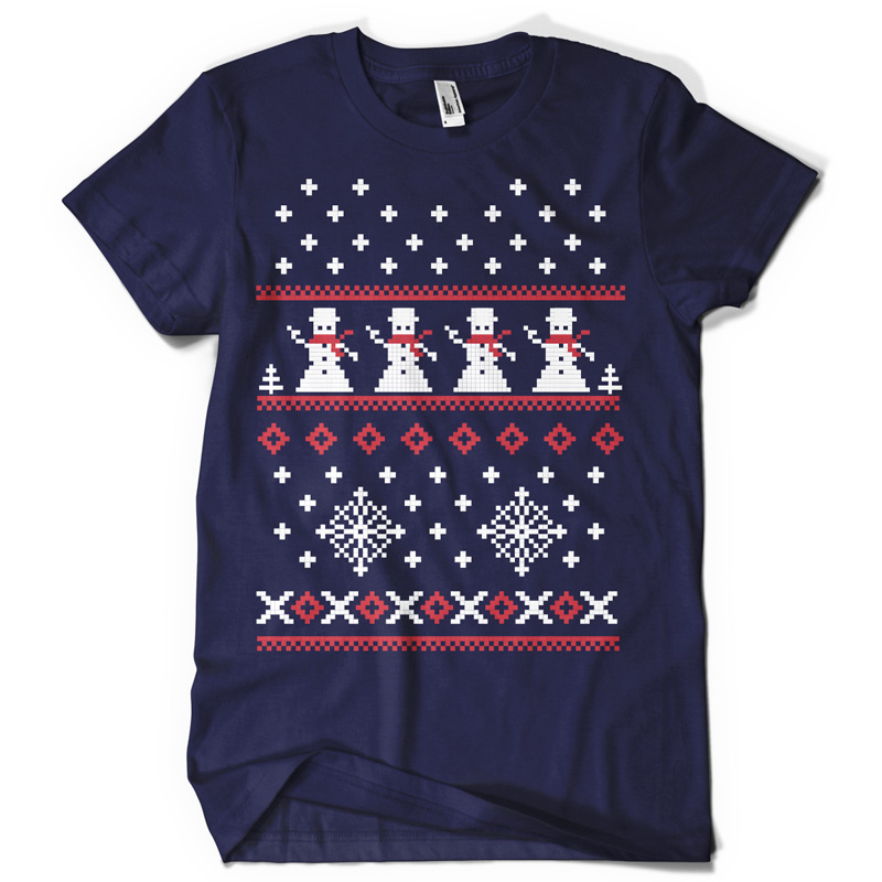 Christmas tale t-shirt design featuring traditional winter holiday patterns, that imitates the texture of knitted pullovers. The template can be used for digital printing and screenprinting.