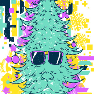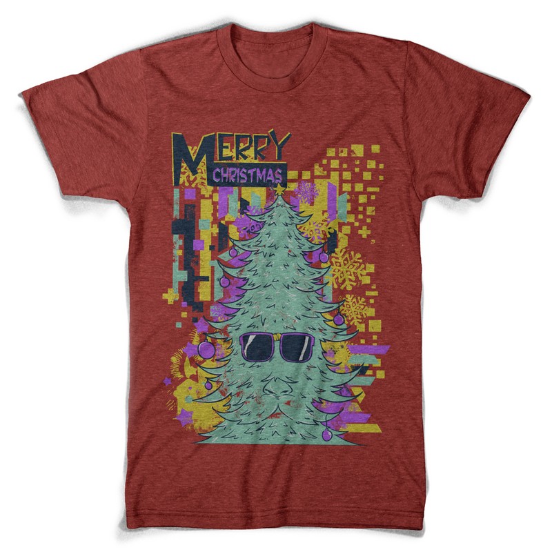 Christmas Tree graphic design template in vector format, featuring detailed alive christmas tree now available for Adobe Illustrator, Adobe Photoshop and Corel Draw and can be used for digital printing and screenprinting .