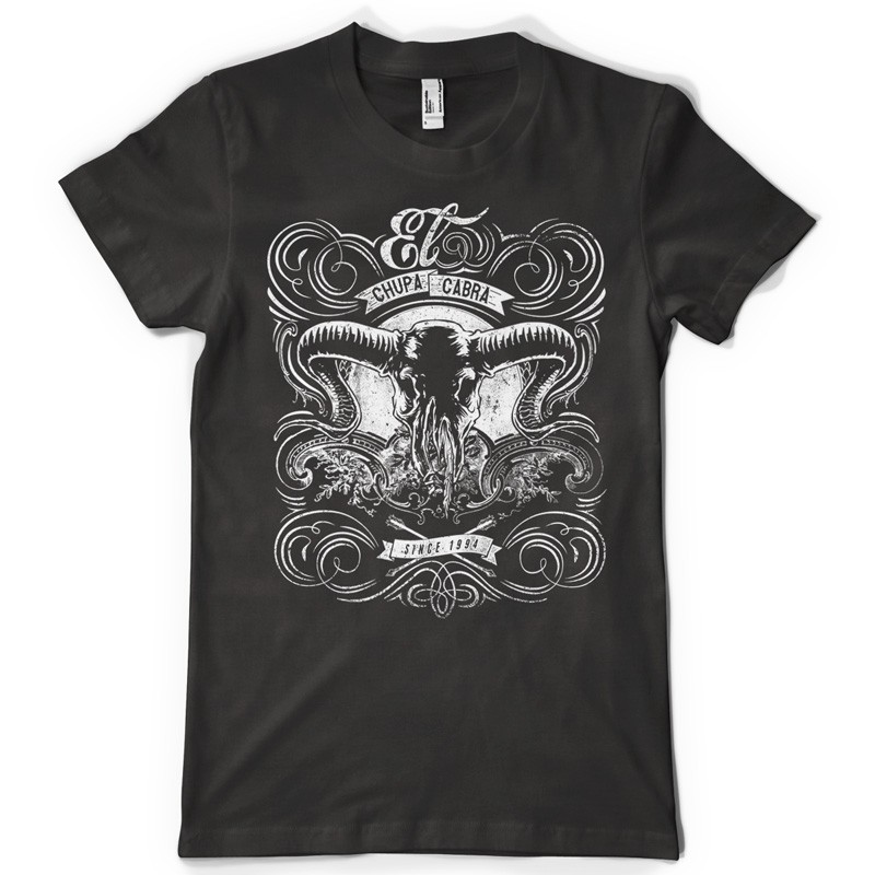 Chupacabra skull digital design template in vector format, featuring detailed horned animal now available for Adobe Illustrator, Adobe Photoshop and Corel Draw and can be used for digital printing and screenprinting .