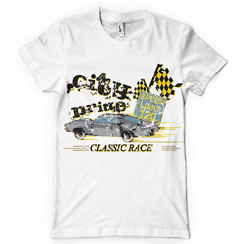 City pride printed t-shirt features a detailed screen print of speed car now available for Adobe Illustrator, Adobe Photoshop and Corel Draw and can be used for digital printing and screenprinting . Ready to print or use in anything you want.