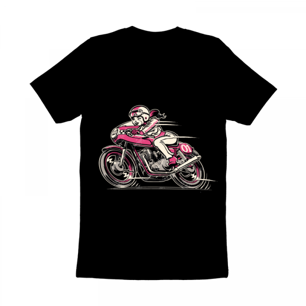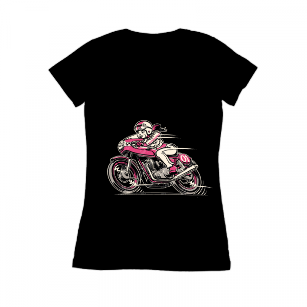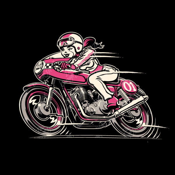 Classic Cafe Racer Bike Girl Cartoon
