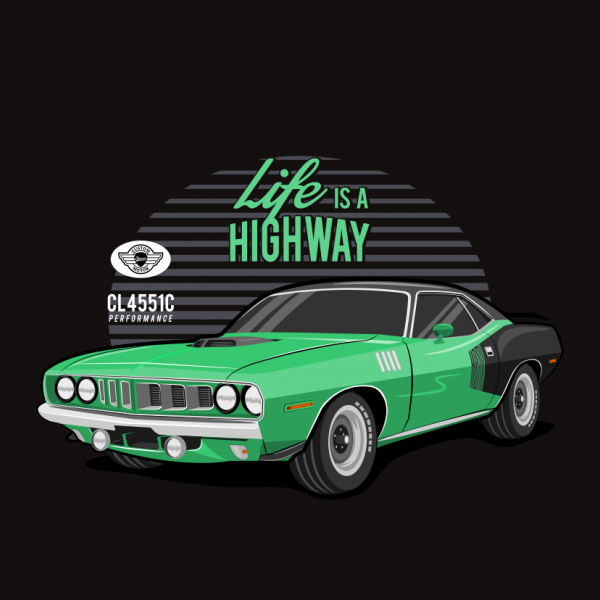 Classic Car Green - Life Is A HighWay T-shirt Design Template based on vector files