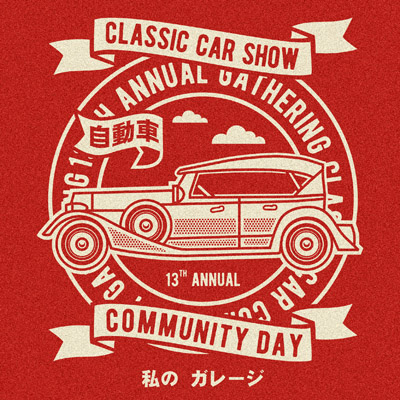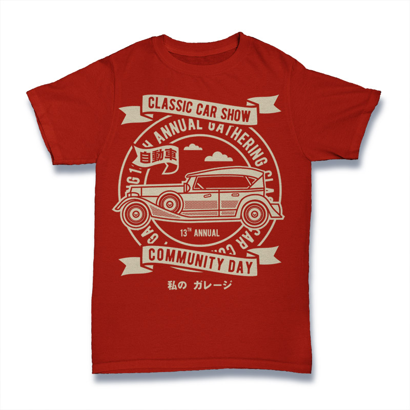 Classic Car Show Cartoon style T-shirt design template , The files are AI, CDR, PSD separated Layers. Can be used for digital printing and screen printing.