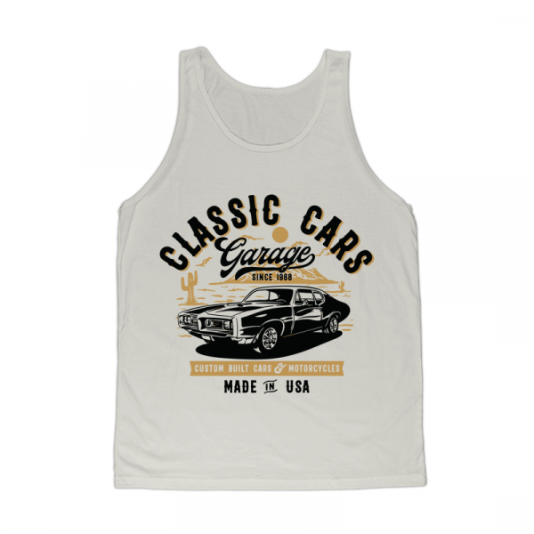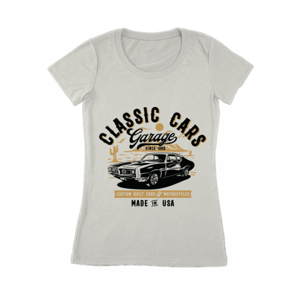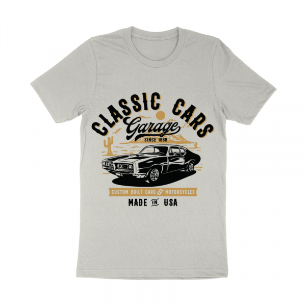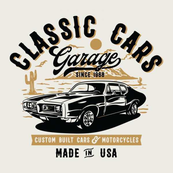 This design “ classic cars garage ” is made in Adobe Ilustrator is ready for print.