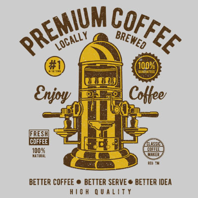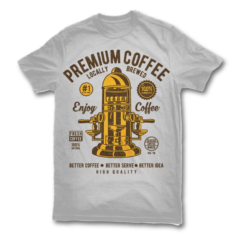 Classic Coffee Maker Tshirt Design Template based on vector files , such as AI and CDR also with PSD separated Layers file, the design has 2 color print, it can be used for digital printing and screen printing.