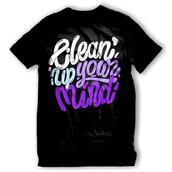 " Clean up your mind " typography style. This design use 4 colourson Black t-shirt. it is high quality vector format, easy for editing process, available for Adobe Illustrator, and Corel Draw and can be used for digital printing and screenprinting.