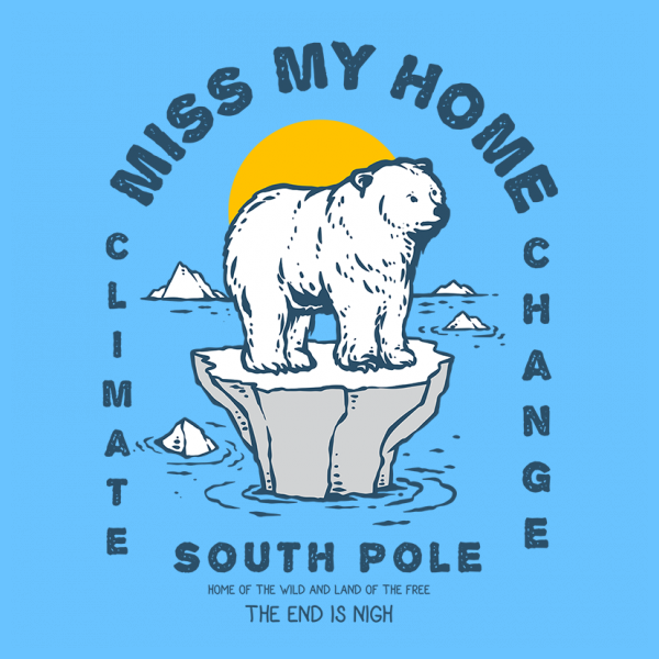 Vector illustration of a polar bear standing on the melting ice because of climate change gloabal warming. Ready to print on t-shirt.