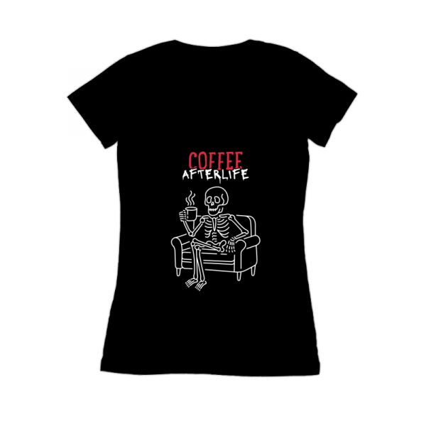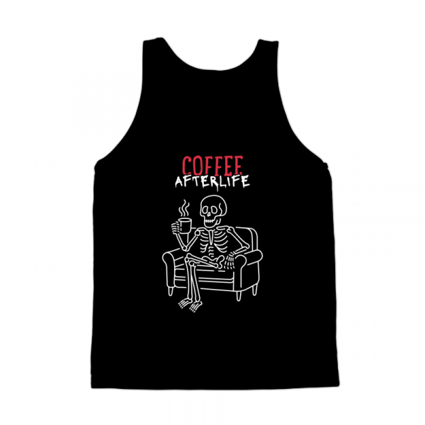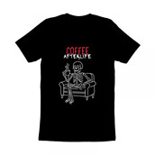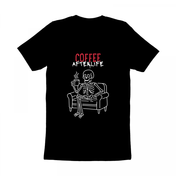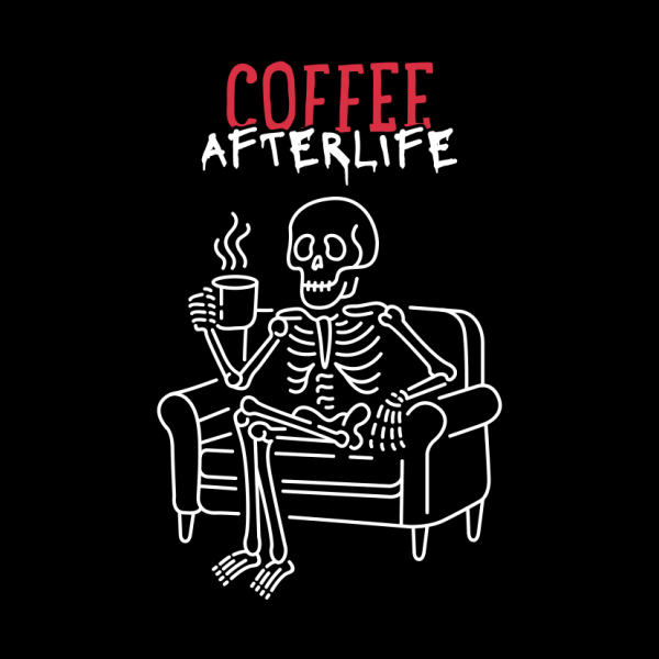 Coffee Afterlife is a monoline illustration that is suitable for apparel or merchandise about skull, skeleton, horror, halloween, trick or treat, death, gothic, ghost, grim reaper, coffee, caffeine, barista, drink, beverage, espresso.