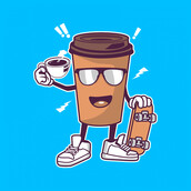 NEW vector illustration of COFFEE AND SKATEBOARD CARTOON, this image is very great for t-shirts, stickers, posters, and anything you want. this design is available in the form of files, CDR, AI, transparent backround PNG, JPEG, SVG, EPS. Thank You