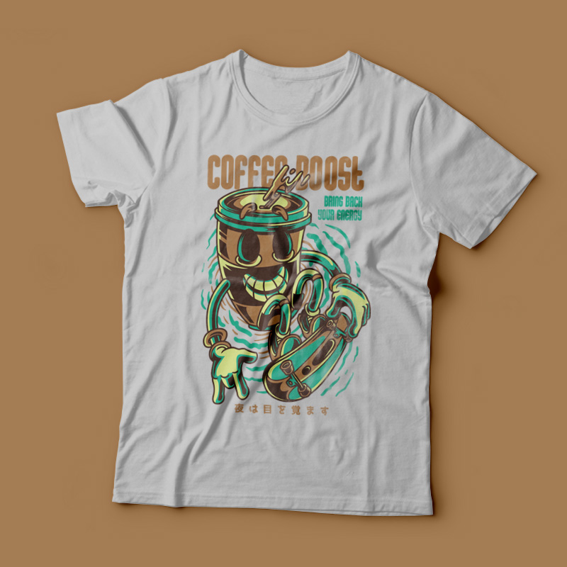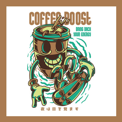 Coffee Boost it's a character design that was made in Adobe Illustrator. Based on vector file, easy to resize and edit. File features AI, EPS, and PNG all in zip, CMYK color mode and 4 color. Can be used for digital printing and screen printing.