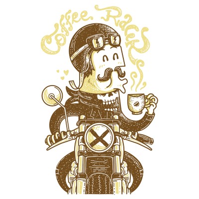 "Coffee Racer" T-shirt design use 2 color on white color with AI 10 and EPS 10 file and separate color layer by layer. For recomended apply to front print.