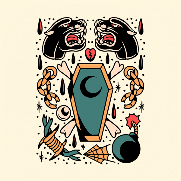 This design is suitable for merchandising purposes, as well as old-school themed t-shirts and clothing or tattoo culture.
